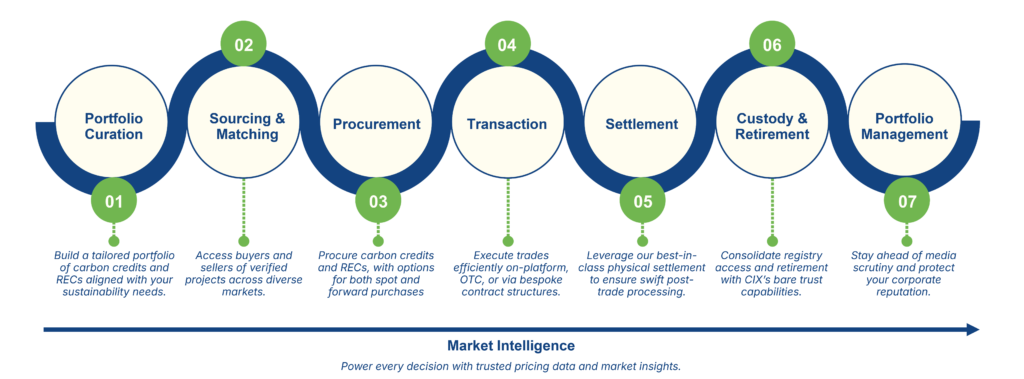 Buyers may use any of these three pathways depending on their procurement objectives, governance requirements, and the type of supply they are seeking. Across them, CIX can support different parts of the journey — from providing one-stop market access to portfolio curation, flexible procurement, settlement, holdings management, and retirement support.