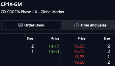 CIX CP1X-GM live order book on 27 February 2026 ($ per ton; size is in ,000 tons)