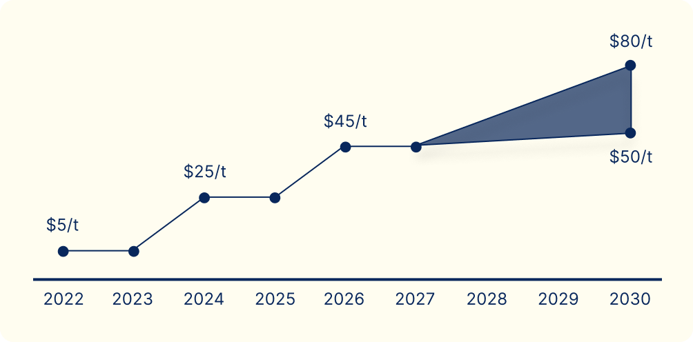 When Singapore raised its carbon tax in 2024 from S$5 to S$25 per tonne of emissions, many companies anticipated cost pressures. The trajectory is clear: rates will increase to S$45 for 2026-27, with a view toward S$50-80 by 2030. Facilities emitting 25,000 tonnes or more of CO₂-equivalent annually — around 50 plants across power generation, manufacturing, and waste — fall under the regime, accounting for about 70% of the nation’s greenhouse gas emissions1.
